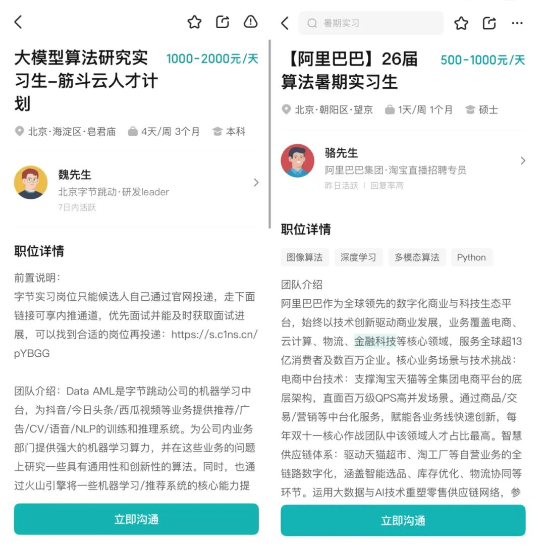这种"抢人要趁早"的策略,直接推高了实习薪资。BOSS直聘数据显示,字节筋斗云计划的大模型算法实习生日薪最高达5000元,阿里同岗位实习生日薪也突破1000元,部分顶尖人才还能享受期权、户口指标等附加福利。人力资源专家朱聚鹏透露,大厂已将战场延伸至高校硕博群体,通过实习绑定提前锁定核心人才,形成"未毕业先就业"的行业常态。