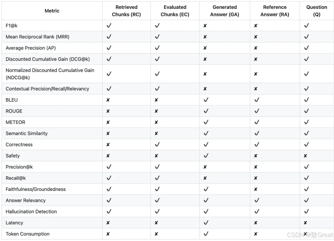 在评估RAG系统时,有几个关键要素你得时刻关注: