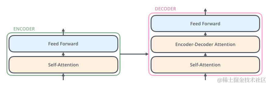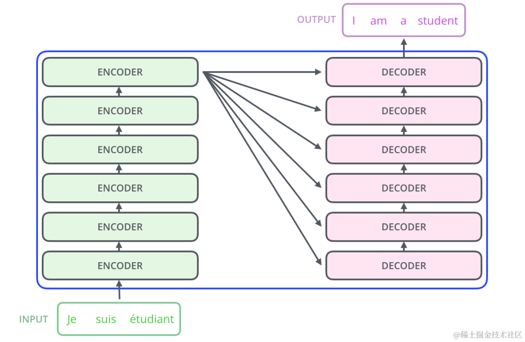打开这个令人着迷的“擎天柱”盒子,我们发现了编码器(encoder)组件、解码器(decoder)组件,以及它们之间的连接。