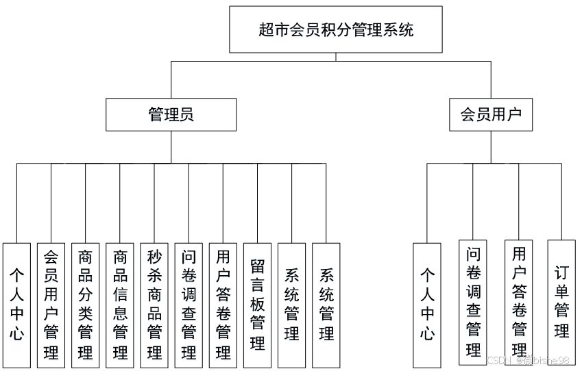 根据以上对系统功能模块的划分和设计,可以得到系统功能模块图如图4-2所示,该图给出了详尽的模块划分和模块组织结构,能够直观展现系统的功能结构关系。