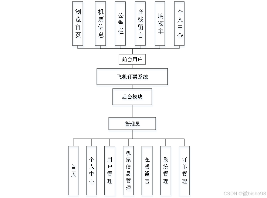 飞机订票系统分为二个部分,即管理员管理和用户管理。该系统是根据用户的实际需求开发的,贴近生活。从管理员处获得的指定账号和密码可用于进入系统和使用相关的系统应用程序。管理员拥有最大的权限,其次是用户。管理员一般负责整个系统的运行维护和总体协调。