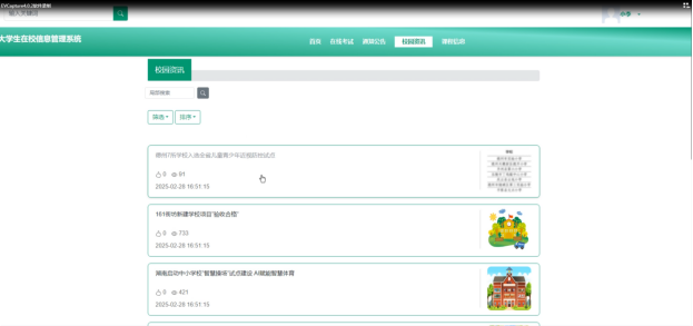 - 校园资讯:学生用户可以在此页面查看浏览学校各类新闻资讯,获取校园动态。
