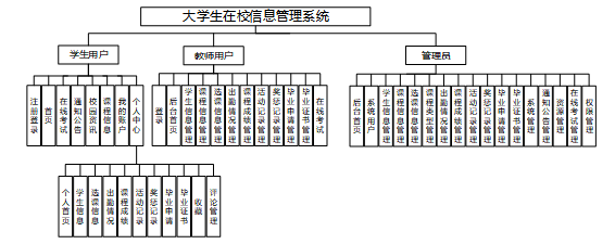 大学生在校信息管理系统划分为了前端模块和后端模块两大部分。
