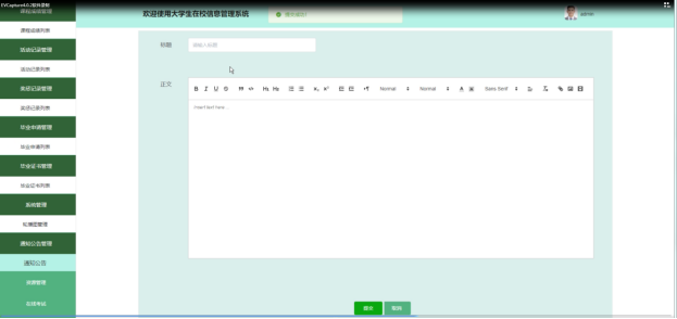通过实际使用反馈,我们不断对系统进行优化和改进,以提升用户体验和系统性能。未来,我们将继续探索更多先进的技术手段,以进一步完善大学生在校信息管理系统,为校园生活带来更多便利。