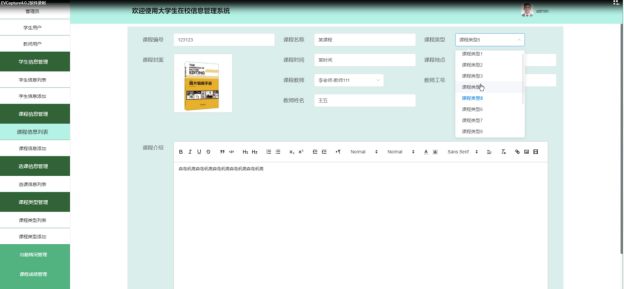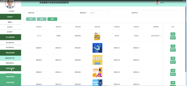 - 课程类型管理:管理员可以管理课程类型,包括查询、重置、删除现有课程类型,以及添加新的课程类型。