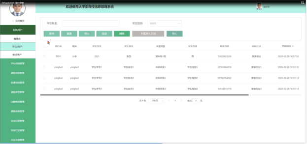 - 学生信息管理:管理员可以全面管理学生信息,包括查询学生详情、添加新学生信息、重置信息、删除不必要的信息等。