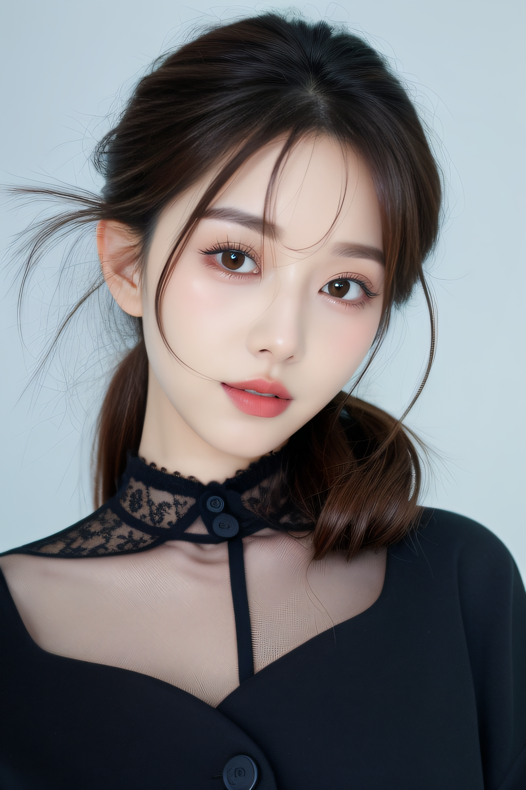 **提示词:**女孩,肖像,看着观众,模糊背景,蕾丝领,黑色蕾丝