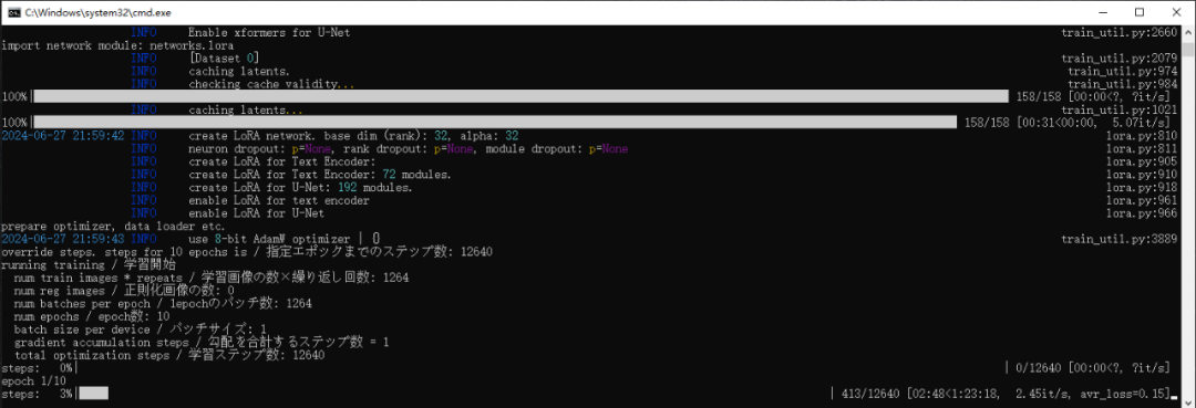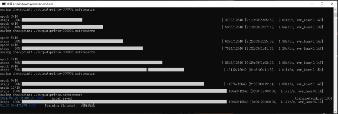 4、一切准备就绪,启动训练,交给时间吧@-@等着炼丹训练完成。祝你好运!