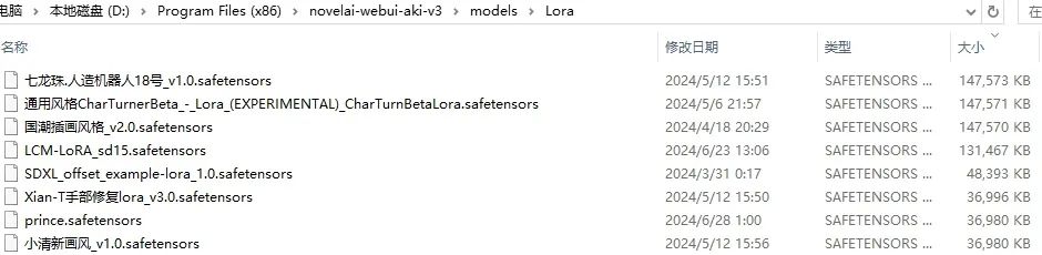 3 Lora模型,就是我们今天要学习的,文件后缀一般是.safetensors,(格式可以互转) 文件大小比embedding大比大模型小,几十MB~几百MB,训练相对容易,现在有了集成安装包就更简单了,硬件要求8G显存以上的卡就可以满足了。