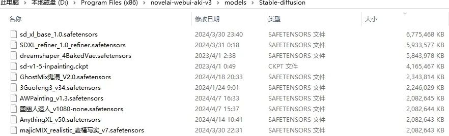 1大模型,也就是底模和主模型,文件后缀.safetensors ,文件大小2G~7G左右,耗费时间最长,图片最多,算力最多,也是最有效的一种,没有底模根本无法生成图片。