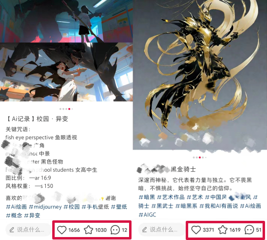 当然,除了某书平台也可以发一些到其他自媒体平台上,变现方式有很多,可以开店铺卖壁纸、提示词、头像、接定制、合作、卖教程、教学等,平时也可以将用AI生成的图片上传到支持AI创作的网站上进行销售。