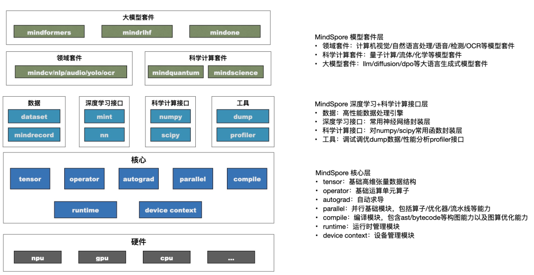 | 昇腾框架 | 支持Qwen2.5-Omni等全模态模型,扩展至3D、视频、传感信号等全模态场景 | 国产硬件部署 |