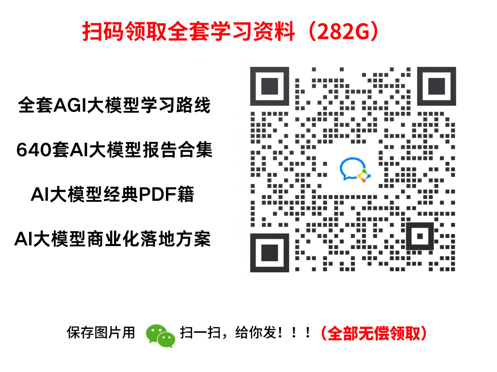 包括:大模型学习线路汇总、学习阶段,大模型实战案例,大模型学习视频,人工智能、机器学习、大模型书籍PDF。带你从零基础系统性的学好大模型!