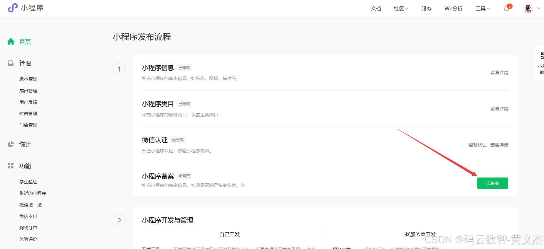 第六步:小程序备案