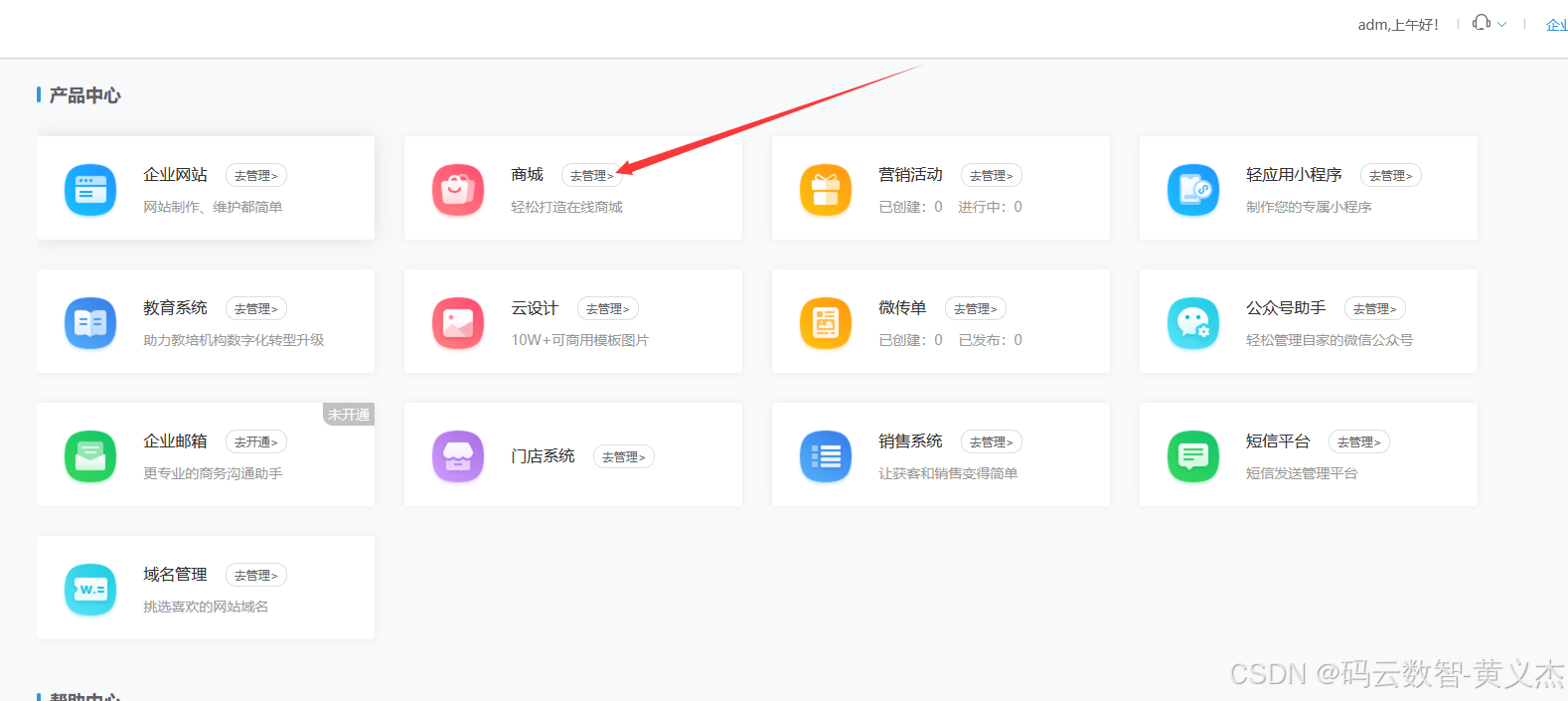 在平台注册账号,产品类型选择-商城