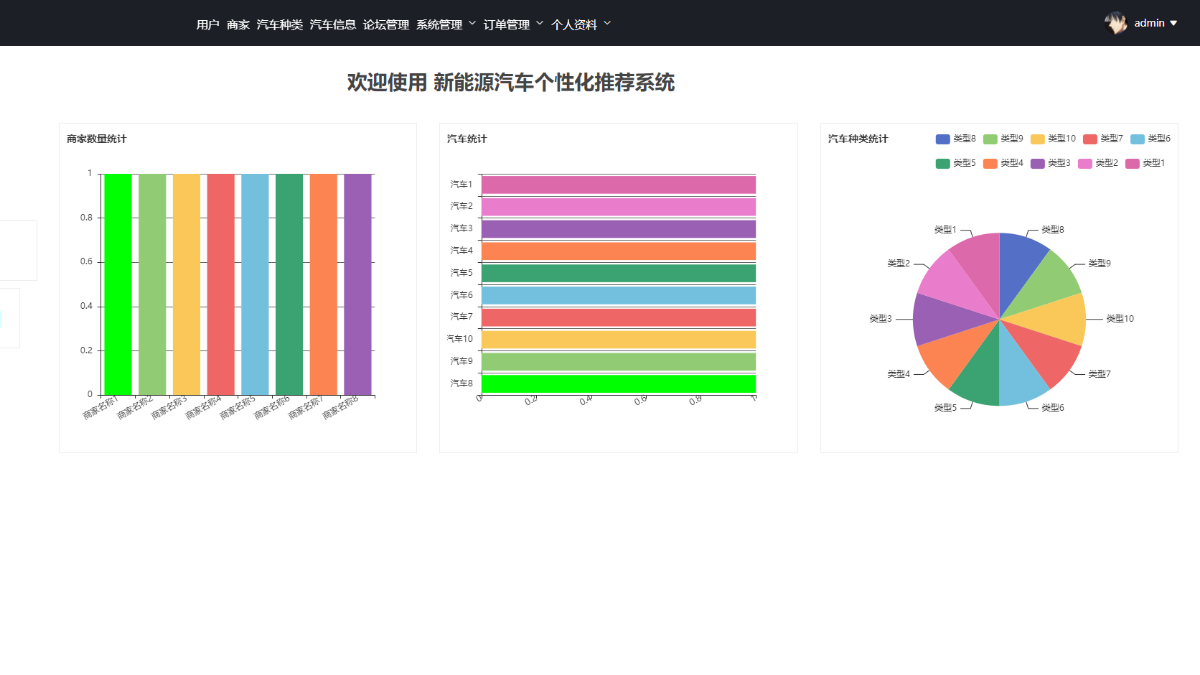 springboot新能源汽车个性化推荐系统 (3)管理员管理 管理人员可以通过首页的后台管理选项,进入登录后台管理,就可以管理用户和商家的相关信息。(1)用户登录注册 本系统提供用户的登录和注册功能,用户可以使用网站首页的登录注册界面进行在线登录注册,并且注册登录后方可使用系统的各种功能[14]。(2)商家登录注册 本系统提供商家的登录和注册功能,商家可以使用网站首页的登录注册界面进行在线登录注册,并且注册登录后方可使用系统的各种功能。功能模块包括:注册,登陆,主界面,商家、汽车信息、论坛、公告信息等模块。其中的数据库能够实现增、删、改、查等功能。