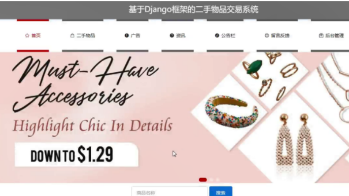 基于Django框架的二手物品交易系统 本系统从三个对象:由管理员和用户、店铺来对系统进行设计构建。主要功能包括:个人信息修改,对用户、店铺、二手物品、广告、资讯、留言反馈等功能进行管理。开发技术:Python django mysql。基于Django框架的二手物品交易系统。系统包含源码➕数据库➕仑文(送ppt)。