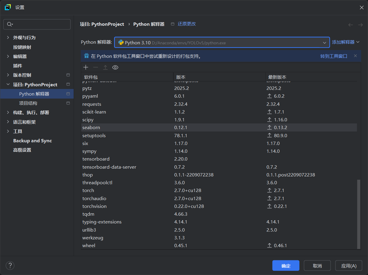 !! 注意:选择3.6~3.13版本的python,否则依赖库会安装失败。
