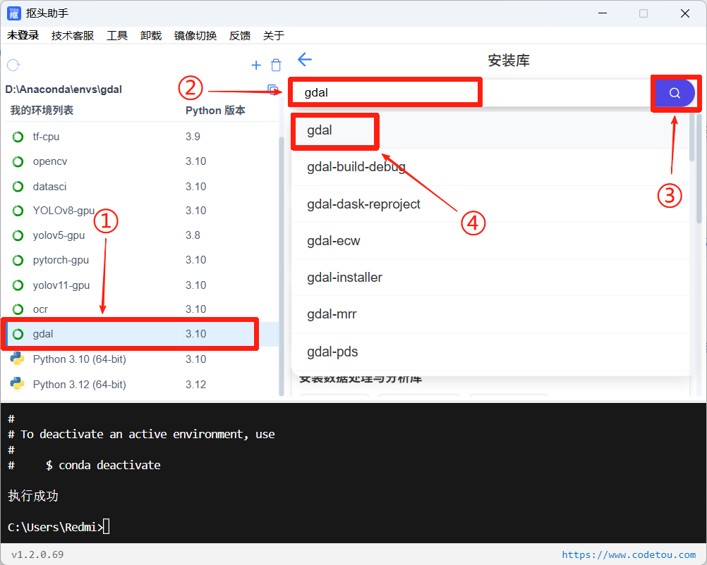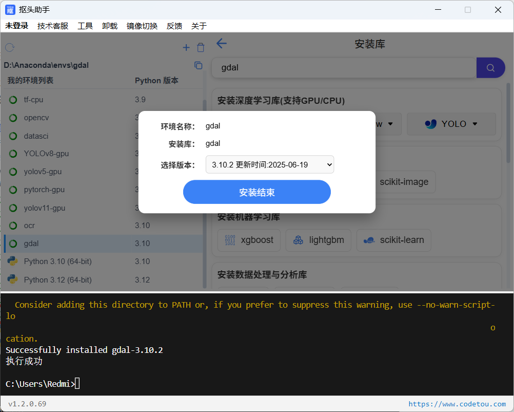 按照以上流程操作即可安装GDAL库,如有问题请在抠头助手内联系客服。
