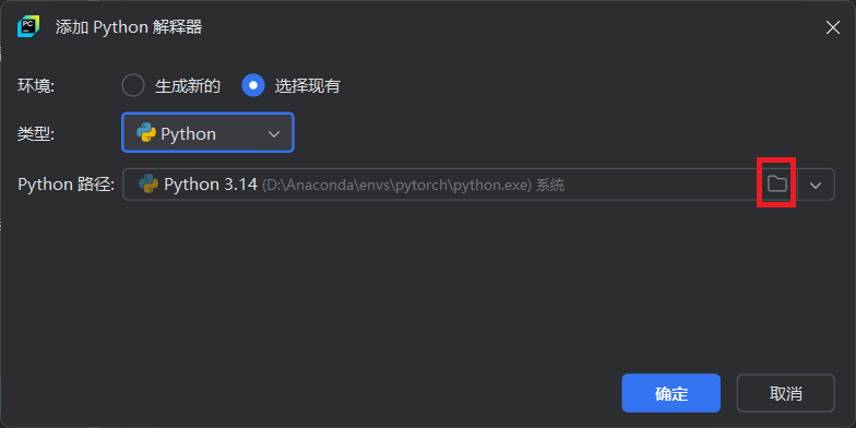 (7)返回python添加解释器界面点击文件夹图标在资源管理器上方粘贴复制的路径。