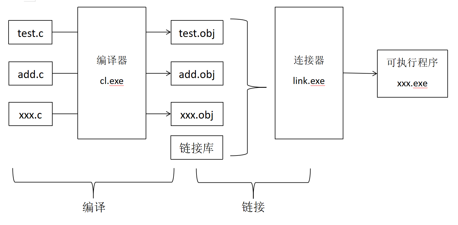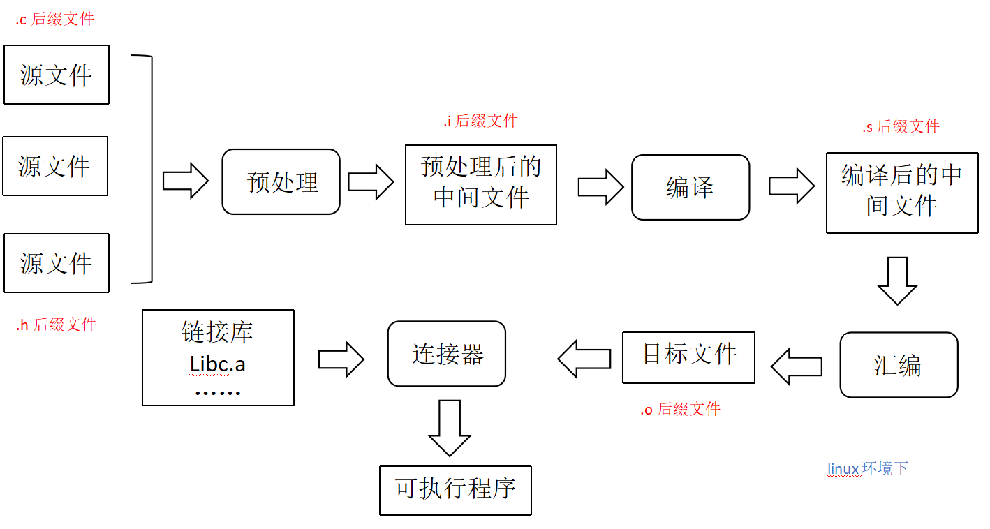 翻译环境是由编译和链接两大过程做成的,而编译又可以分为:预处理(预编译)、编译、汇编三个过程.