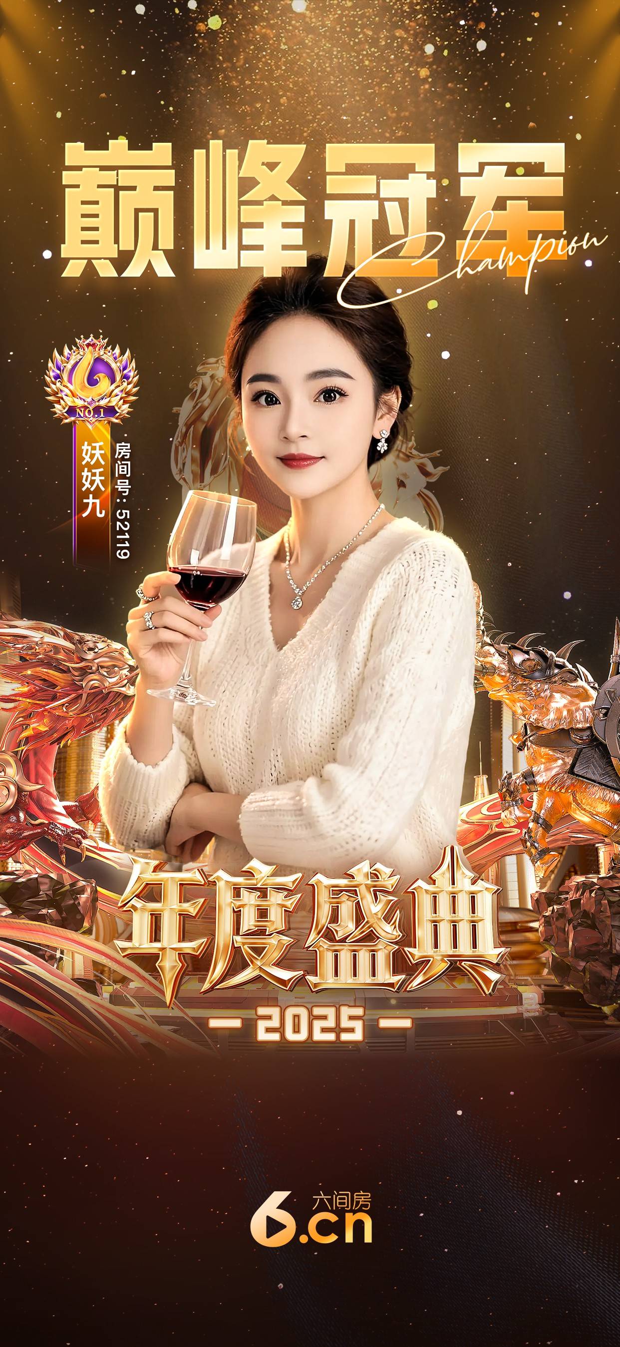 六间房2025年度盛典的璀璨灯光下,主播妖妖九摘得巅峰赛区冠军桂冠,并荣获“年度一姐”殊荣。这个在直播间唱跳自如、妙语连珠的姑娘,用五年时光在方寸屏幕间书写了一段关于热爱与坚守的故事。从实体创业者到全职主播,从默默无闻到行业翘楚,她的每一步成长,都藏着对职业的敬畏与对粉丝的赤诚。