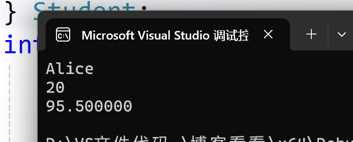 Student stu = {"Alice", 20, 95.5f};