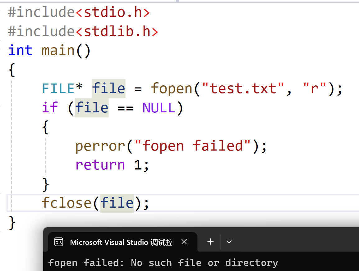 if (file == NULL) { perror("Error"); return 1; }