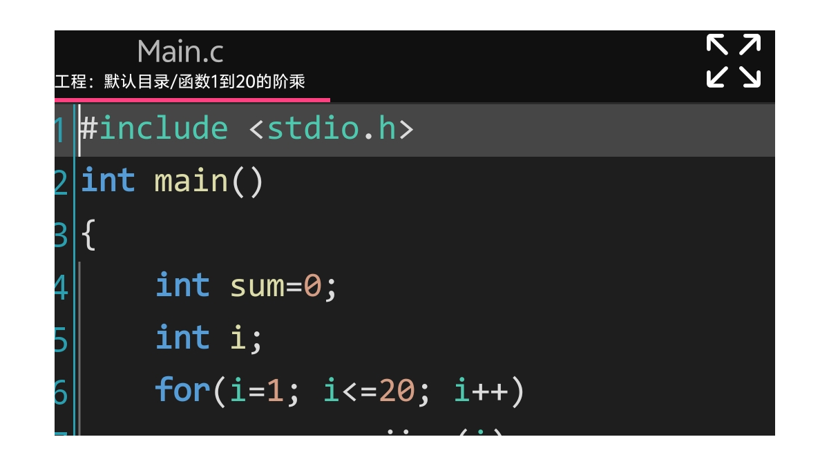 求1阶乘+2阶乘+3阶乘+......20阶乘的结果使用递归 如果 n 小于等于 1,将 n 赋值为 1,并返回 1,代表 0 和 1 的阶乘都是 1。首先在 main 函数中初始化变量 sum 为 0,然后通过循环调用 jiec 函数计算从 1 到 20 的每个数的阶乘,并将其累加到 sum 中,最后输出 sum 的值。使用 for 循环从 1 循环到 20,每次循环调用 jiec 函数计算当前数的阶乘,并将结果累加到 sum 中,最后输出 sum 的值。如果是个很大的数值,可能会出现整数溢出的情况,因为阶乘的结果增长非常快,可能超出 int 类型的取值范围。