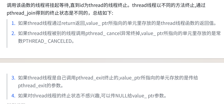 调用这个线程等待函数的线程将会被挂起,直到等待的线程结束