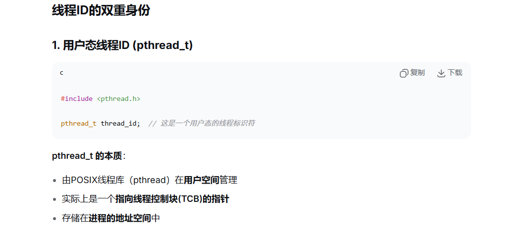 来总结一下一会用户ID,一会内核ID来标识一个线程,用户态线程就是我们调用的pthread提供给我们的ID,这个ID本质是我们虚拟地址空间的一个虚拟地址。
