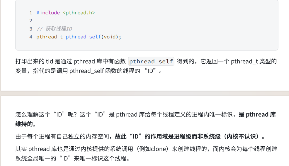 也可以查看线程的ID,但是这个ID是pthread来维护的,内核不认识,内核有自己的线程标识。