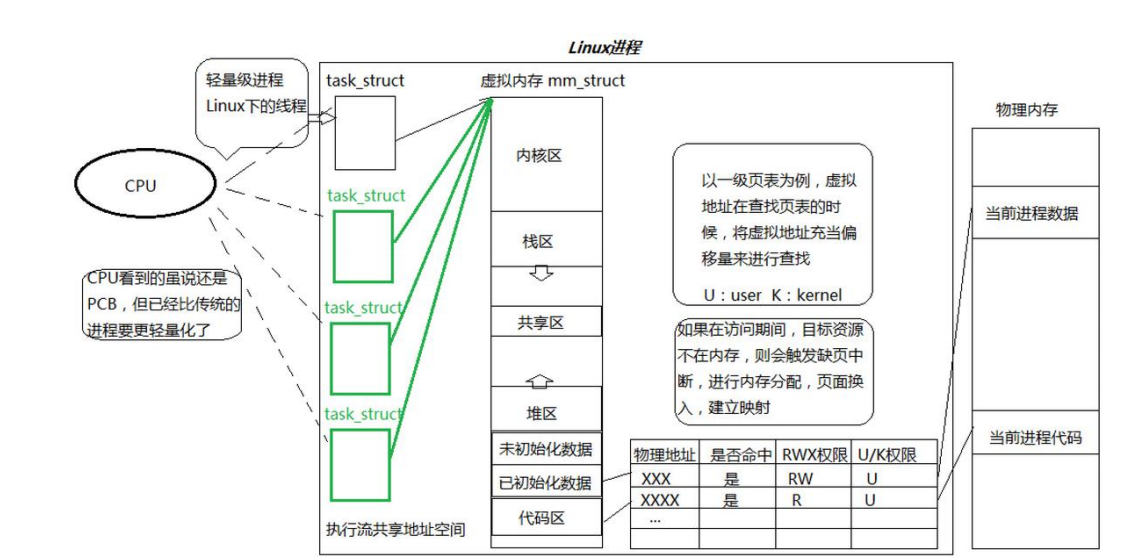 Linux下进程和线程其实都很类似,Linux没有为线程单独创建一个结构体,而是和进程的结构体一样,都是task_struct,线程是CPU调度的基本单位,但是线程之间虽然大部分都可以进行共享,但是还是有属于自己的资源。
