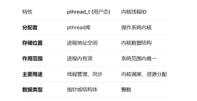 由于线程本质底层也是轻量级进程,所以我们内核就用了一个全局唯一的ID来标识,由于我们创建一个进程,我们这个进程ID是全局唯一的,因为pthread_t的本质还是一个进程地址,是可以进行重复的,所以冲突并不奇怪,所以我们用户态的pthread_t仅仅是一个提供给我们用户使用的,对于内核来说线程就是轻量级进程,必须拿一个全局唯一的ID来进行标识。