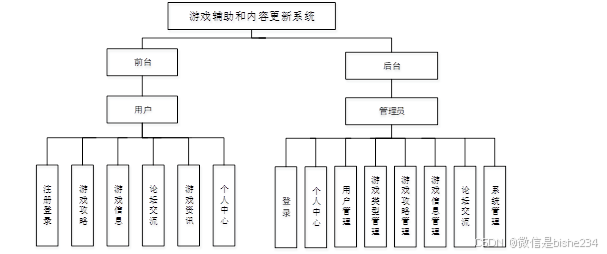 游戏辅助和内容更新系统采用了结构化开发的方法。这种开发方法的优点是控制性比较强,开发过程中采用了结构化和模块化的设计思想,自顶向下,从总体到部分,合理划分系统的结构和模块[11]。结构化开发时使用模块式开发,各模块之间互不影响,方便系统的开发与管理。 网站整功能如下图所示: