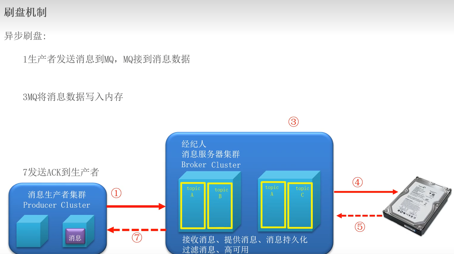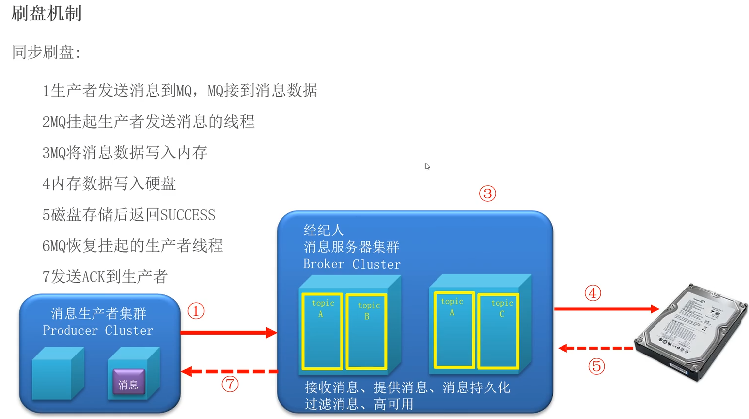 那么既然知道了消息最终是要保存到磁盘中的(保存到内存肯定不安全),那么是立即保存? 还是有规律的保存,这就涉及到刷盘方式