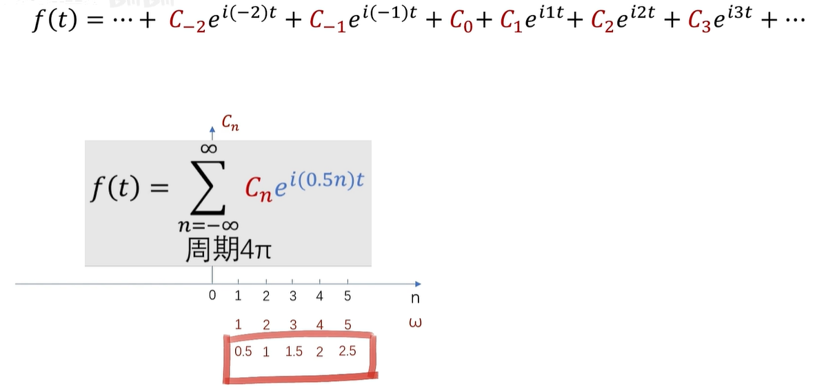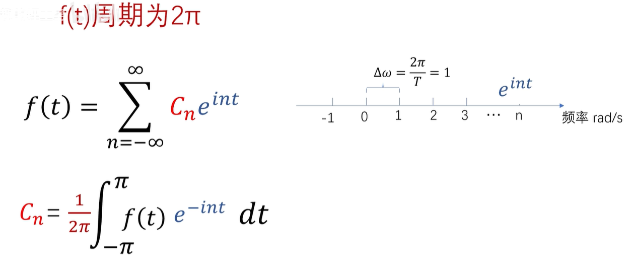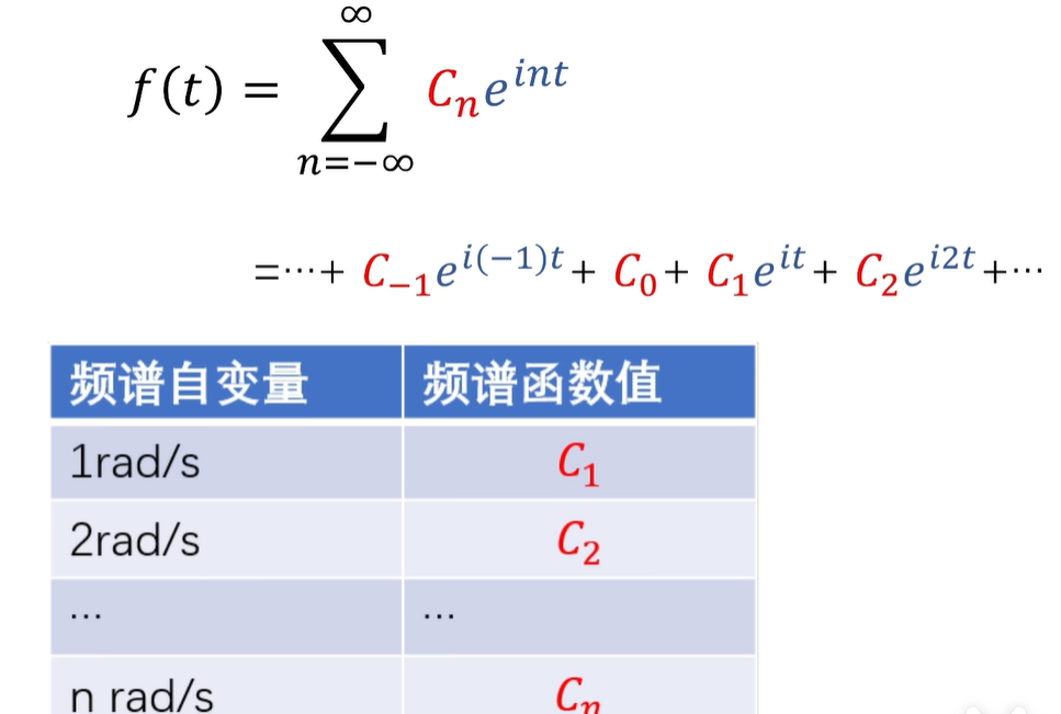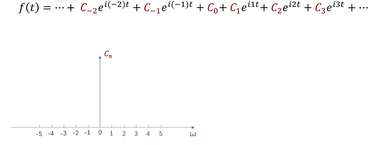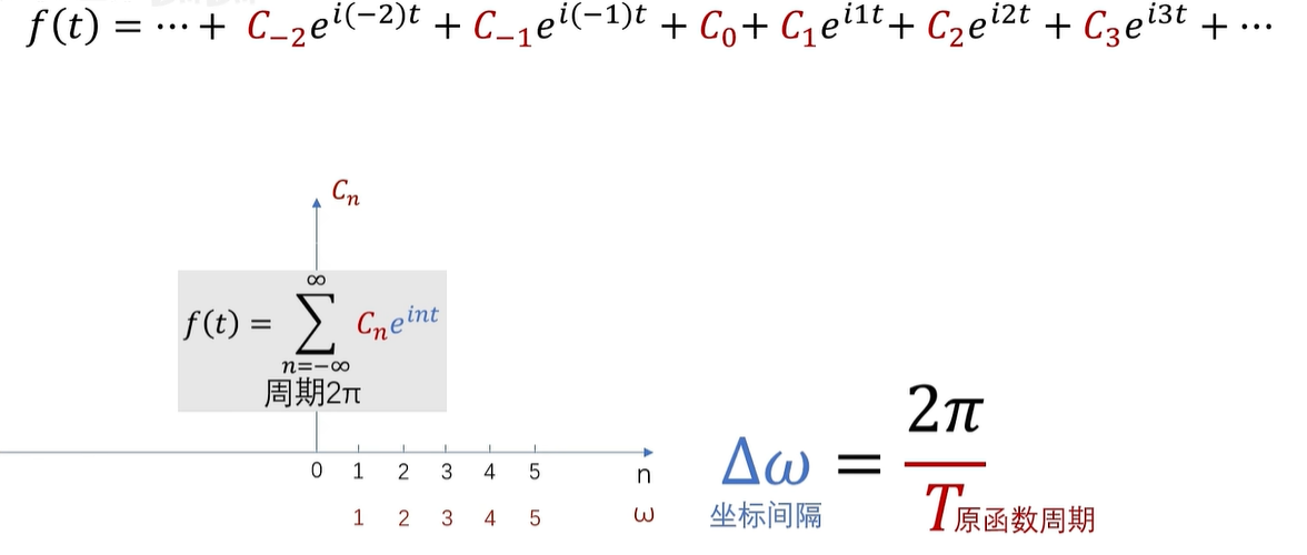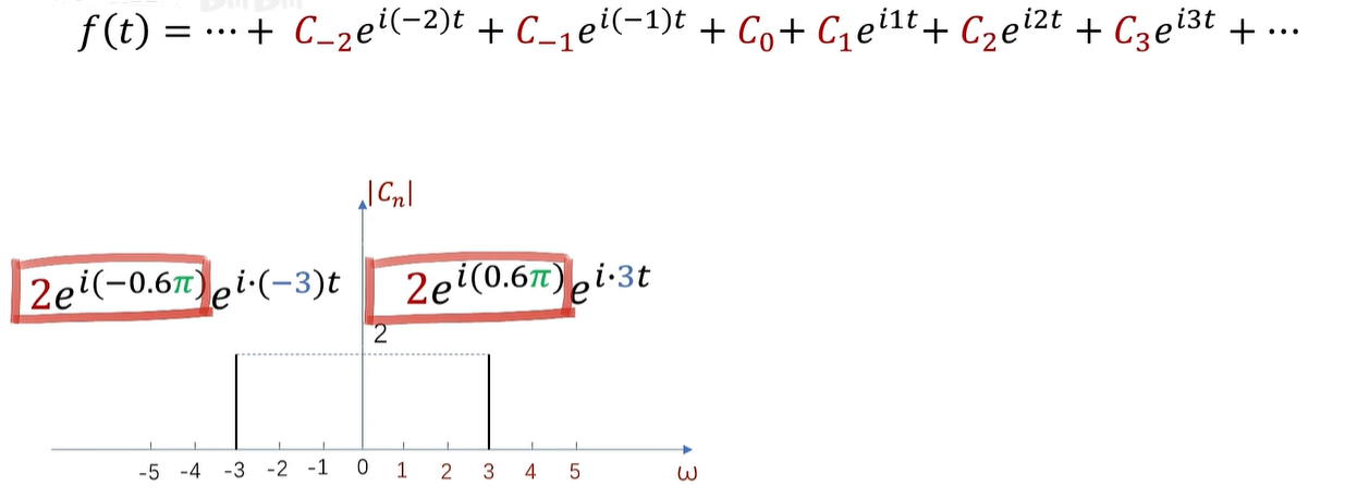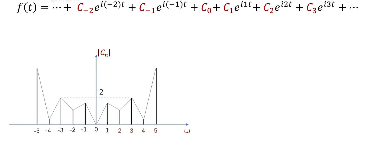 例如,这是一个周期为2π的函数的傅立叶级数展开,CN 呢,在这里是系数,同时也是频谱的函数值。