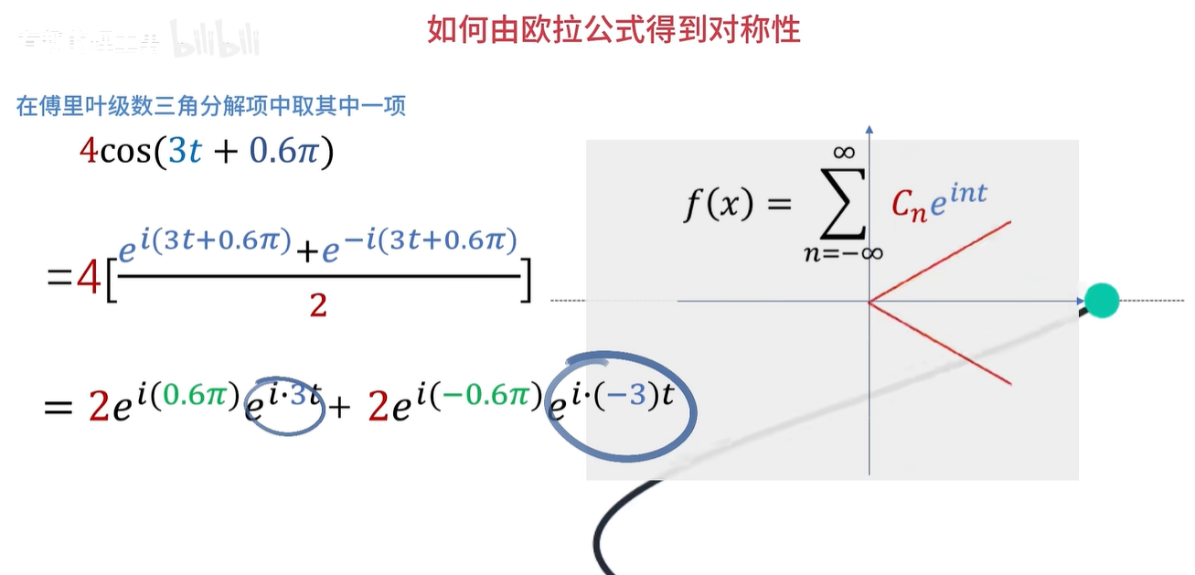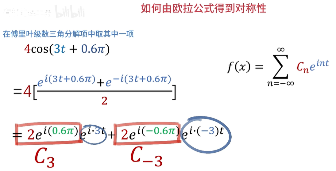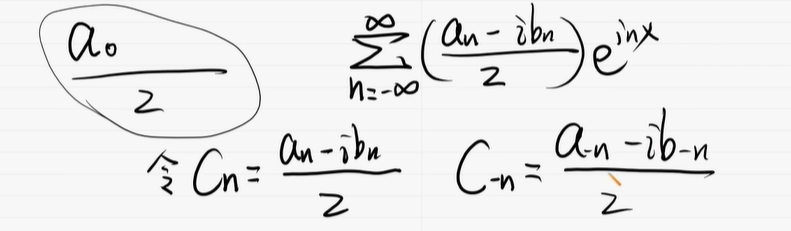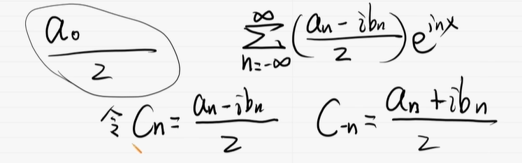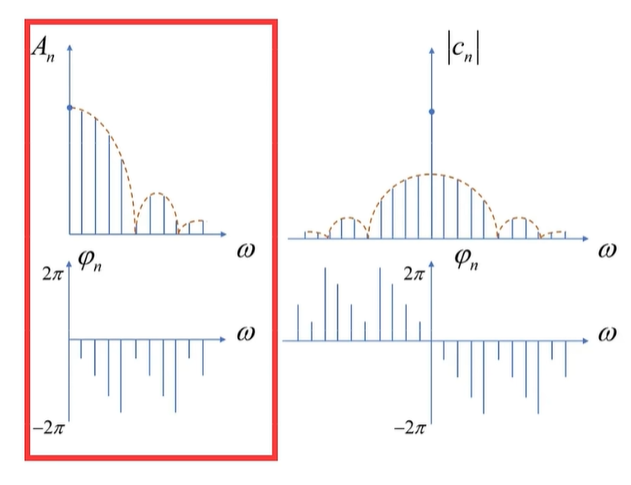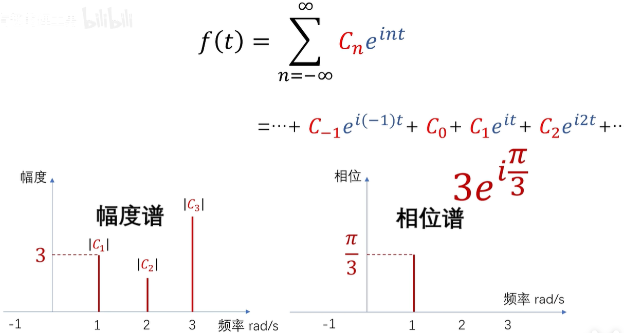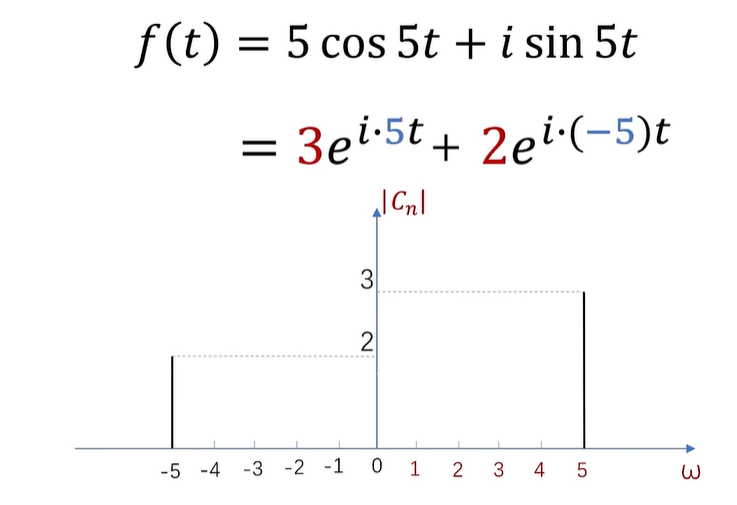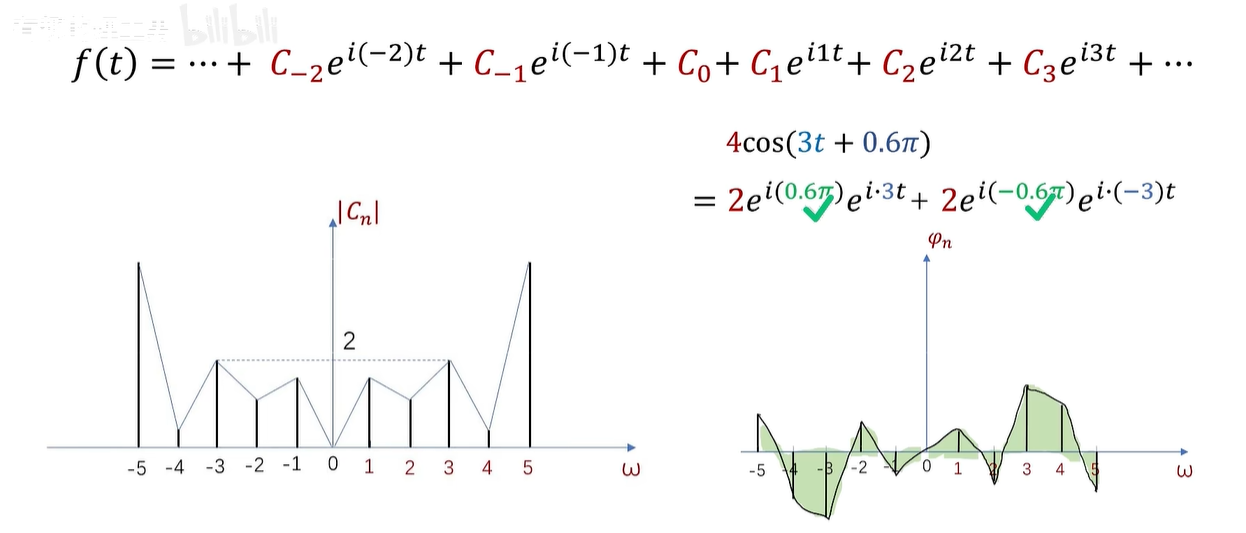 例如,这是一个周期为2π的函数的傅立叶级数展开,CN 呢,在这里是系数,同时也是频谱的函数值。