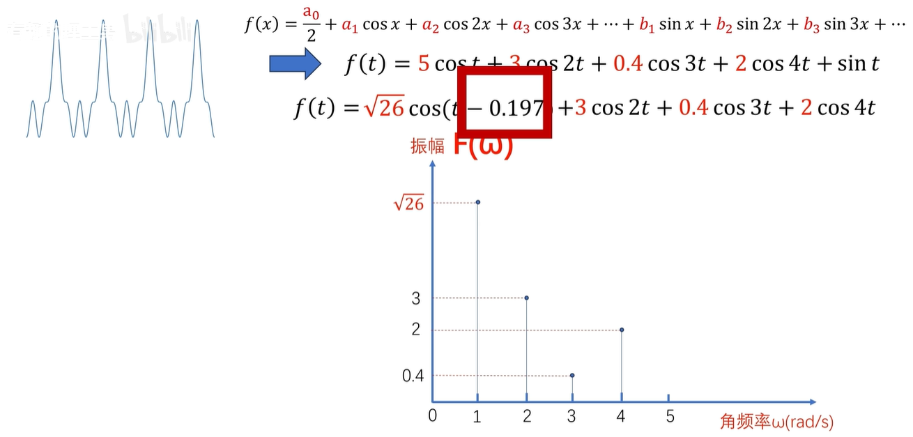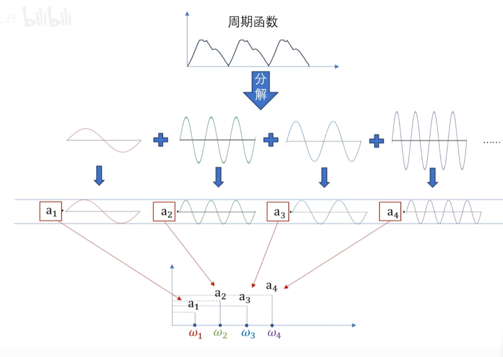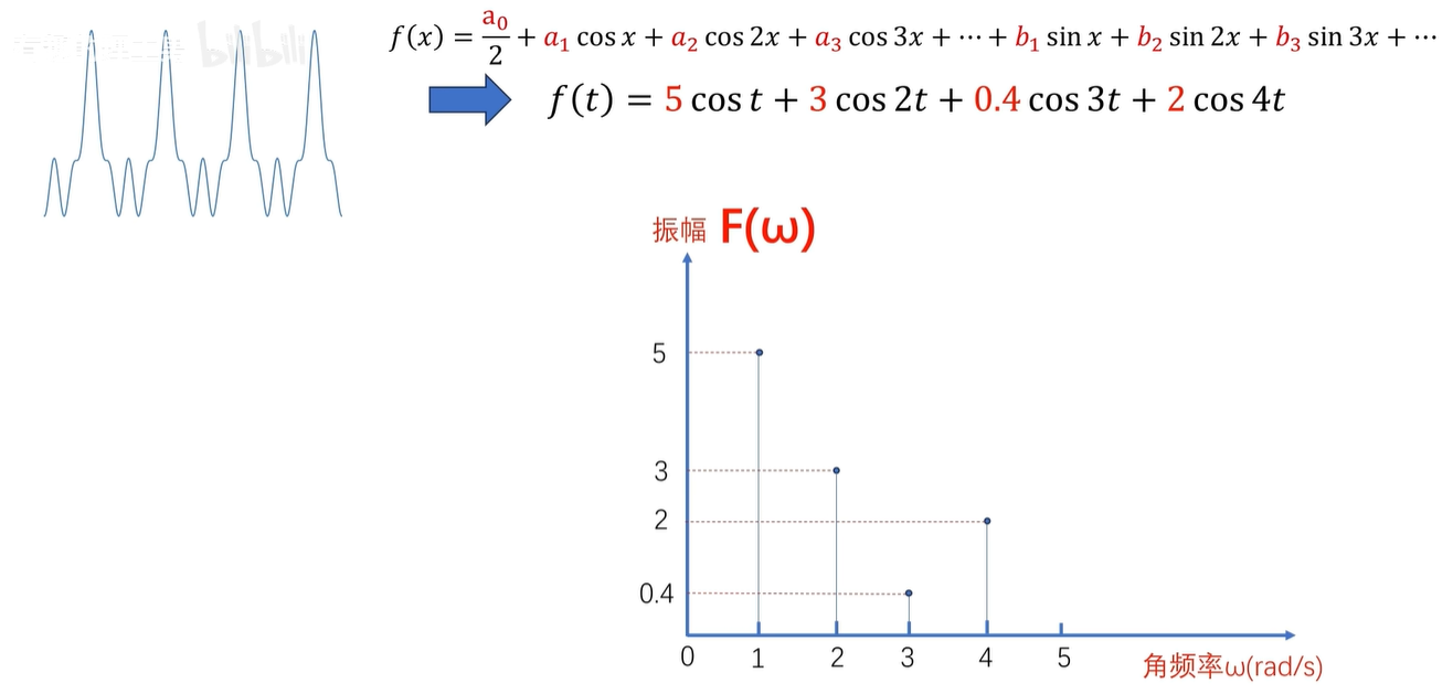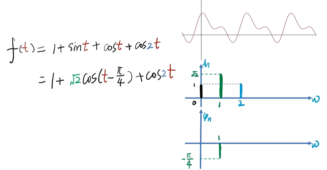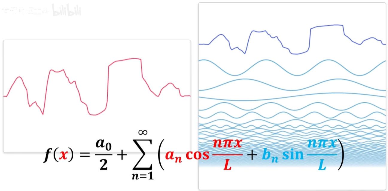 简单点说呢,就是一个有周期循环的函数,都可以化成一堆 sin、cos 函数的相加。
