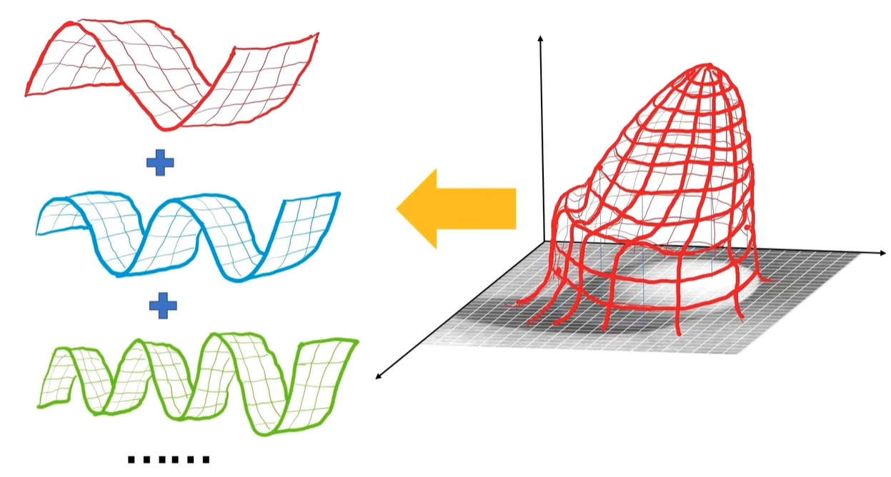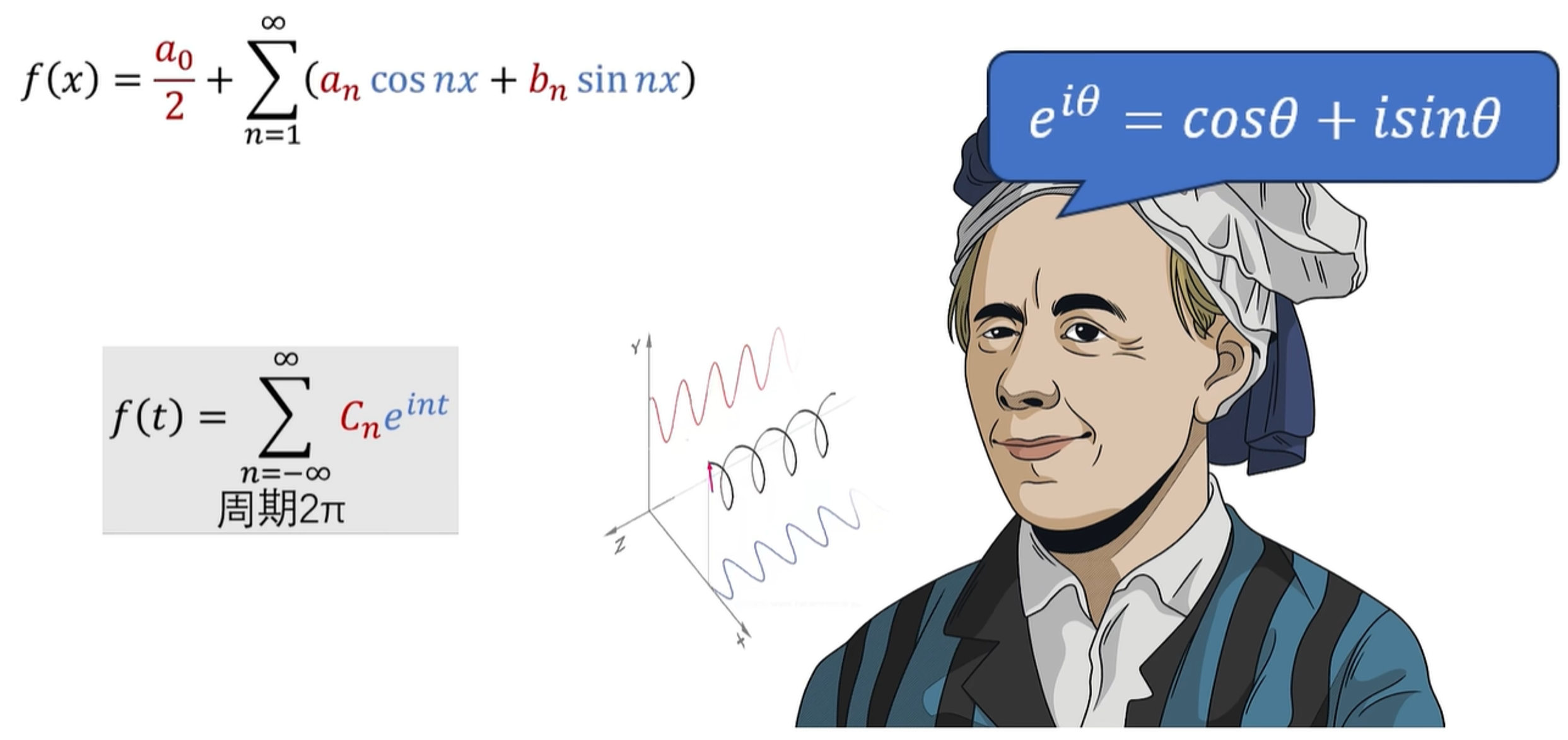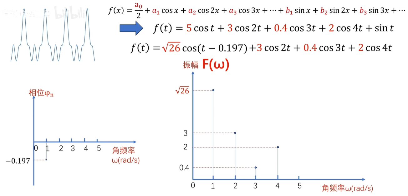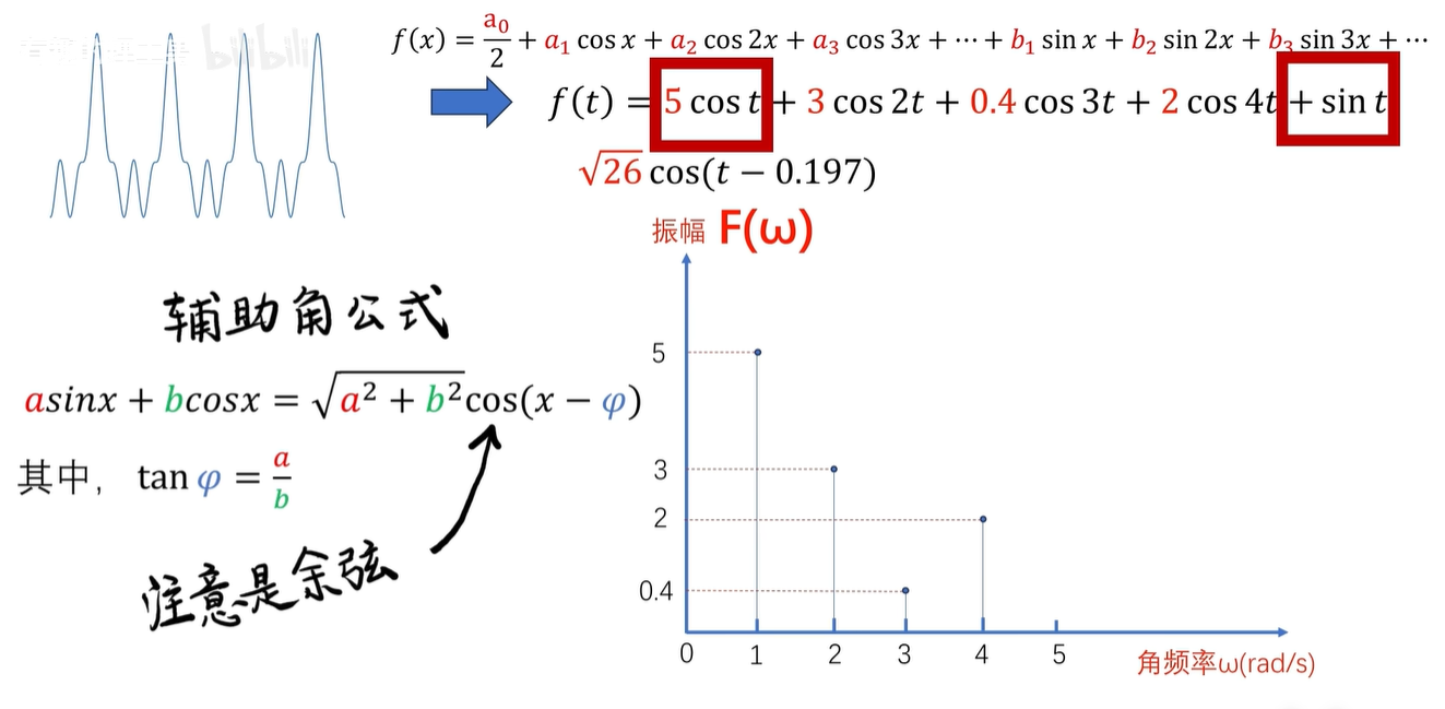 简单点说呢,就是一个有周期循环的函数,都可以化成一堆 sin、cos 函数的相加。