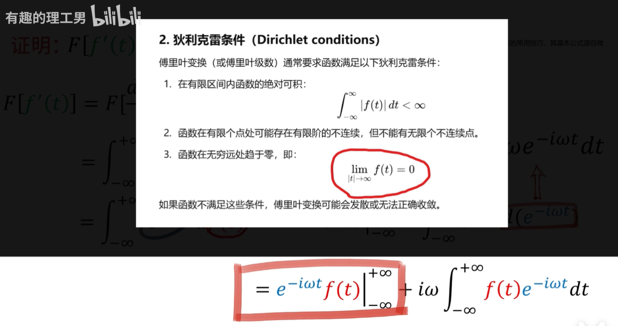为什么等于零呢,因为你原函数既然可以用来做傅里叶变换,那它必定是绝对可积的,也就是在无穷远处是等于零的。(狄利克雷是充分条件,此处不严谨)