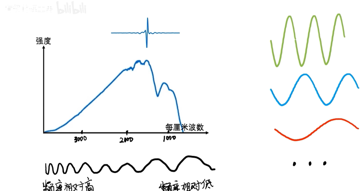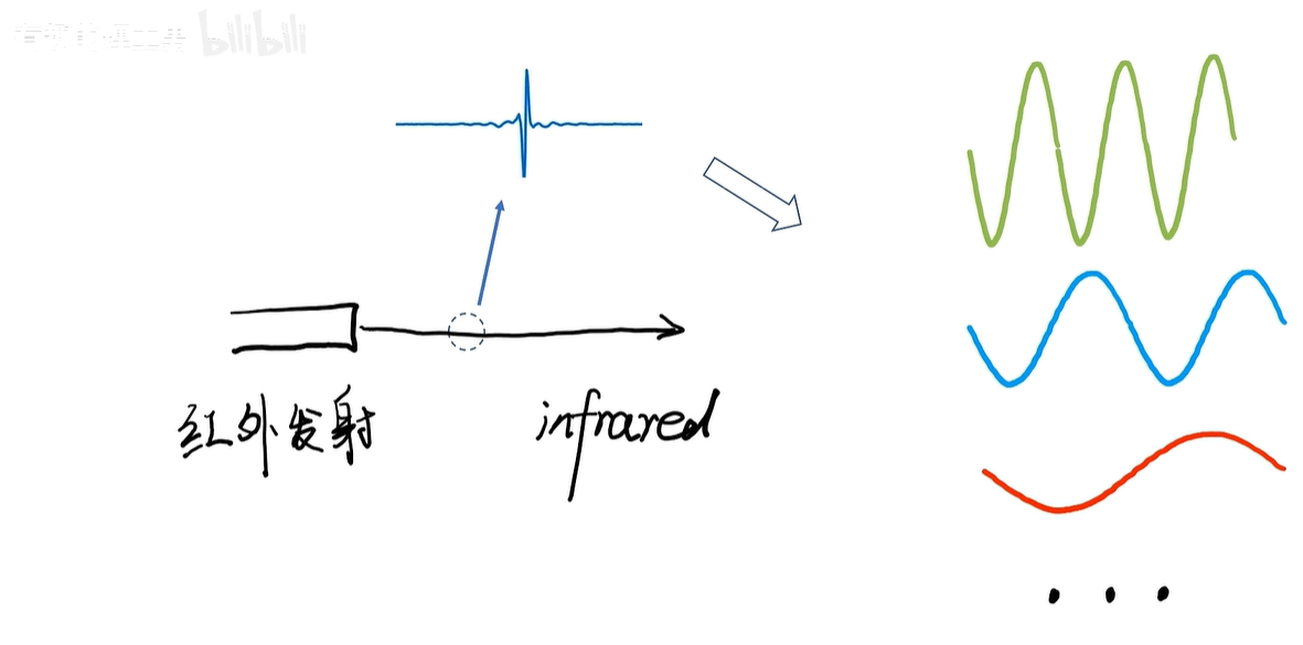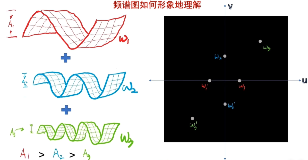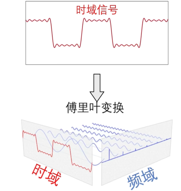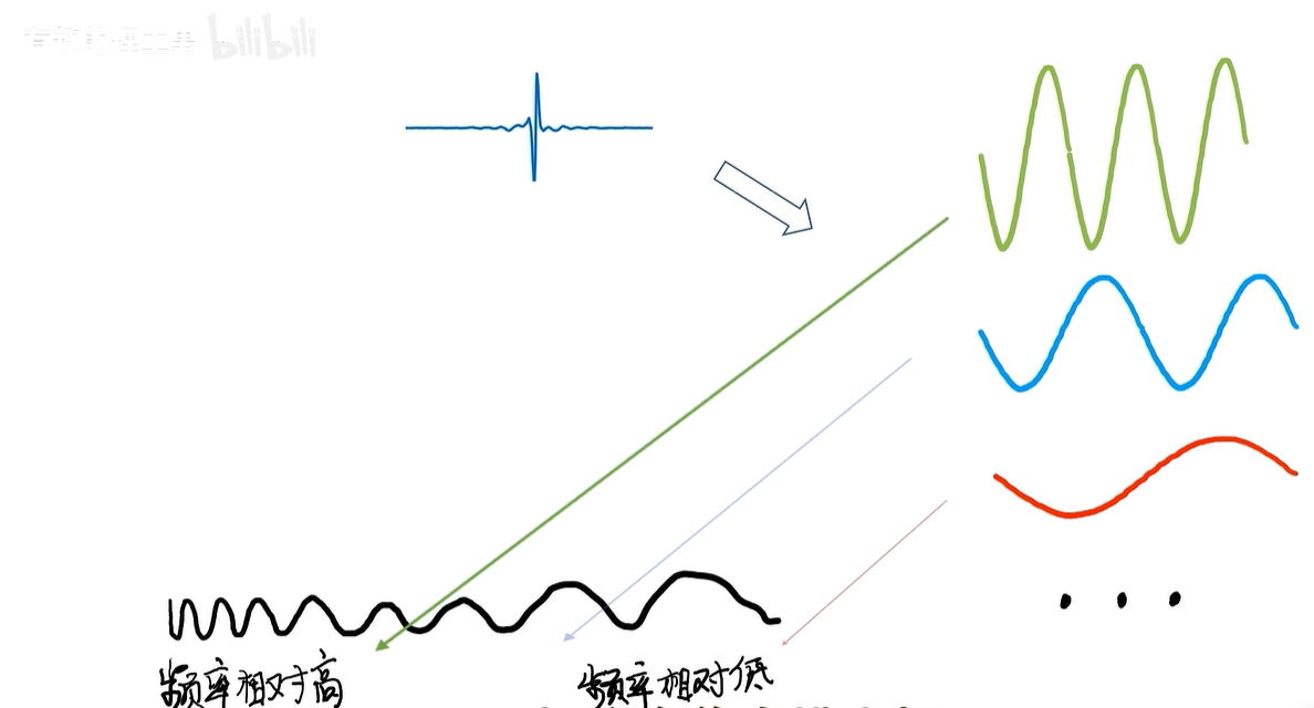 傅里叶变换可以让我们把这些混叠在一起的信号分拆开,让我们知道这个信号是由哪些频率成分构成的。