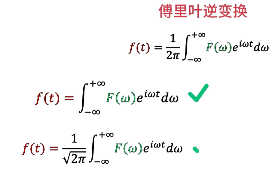 这个时候,这个积分就变成了我们所熟知的,傅里叶逆变换的公式了.