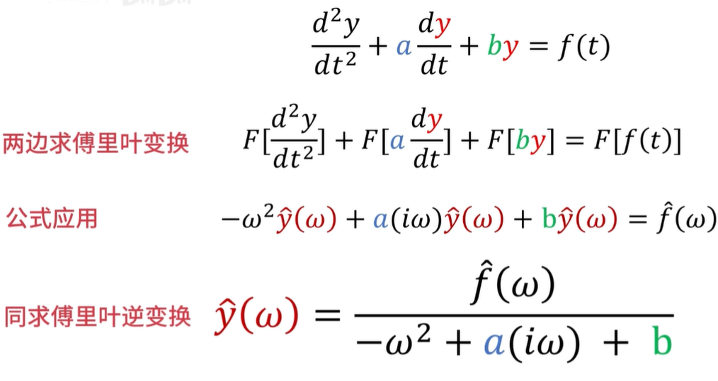 在面对 N 阶导函数的时候,要么就先降阶再求解,要么就有一个数学工具,可以无视它求导的阶数,直接进行输出的啊,这个工具呢,就是傅里叶变换了。
