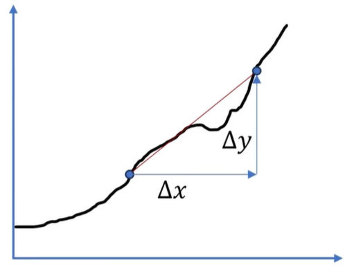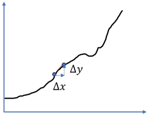 但是如果回到刚刚火焰山的例子,越靠近火焰山,那温度肯定是飙升的更厉害的,所以说dy除以 dx就不可能是一个恒定实数。