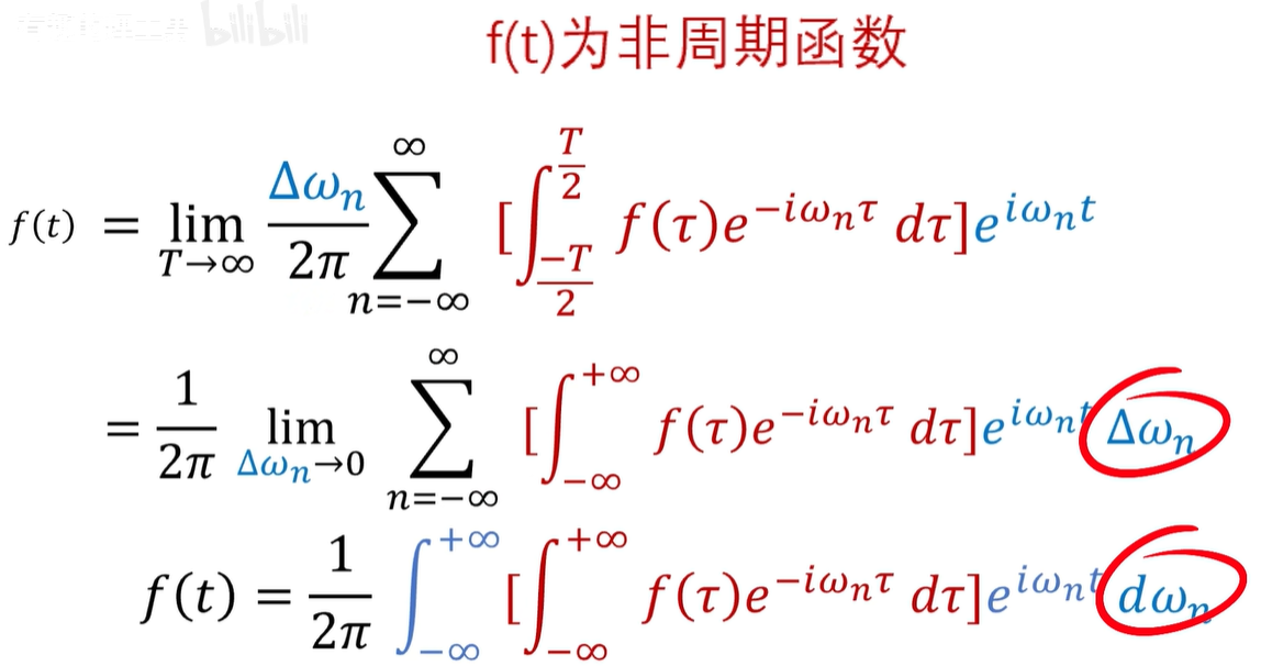 那么极限的这里呢,就变成了∆ωn趋向于零了啊,同时这个积分的上下限呢,就变成了负无穷到正无穷。