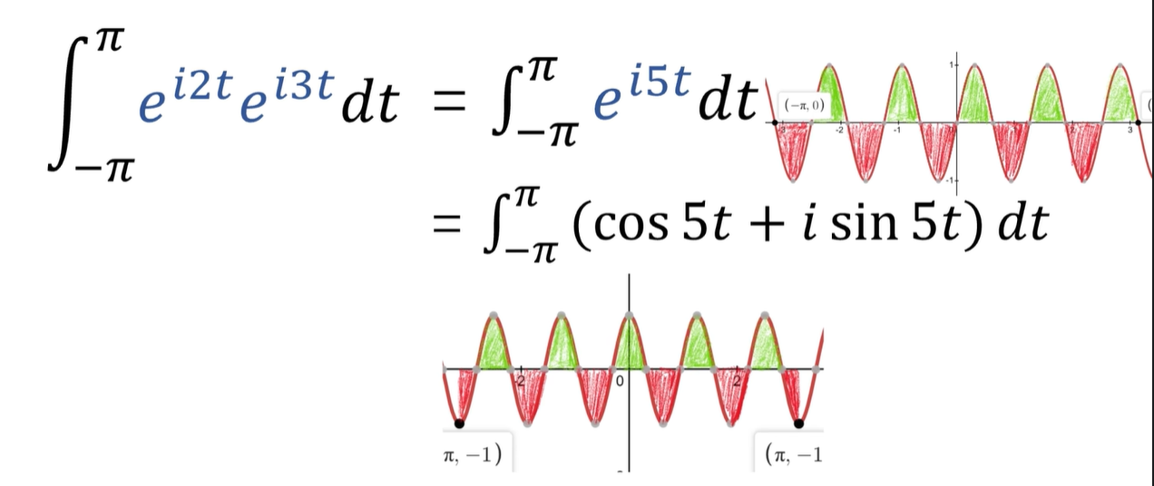 - 而相加的动作不就是求定积分吗,那刚刚的向量内积就变成了函数的内积了,就是这个积分的形式了。