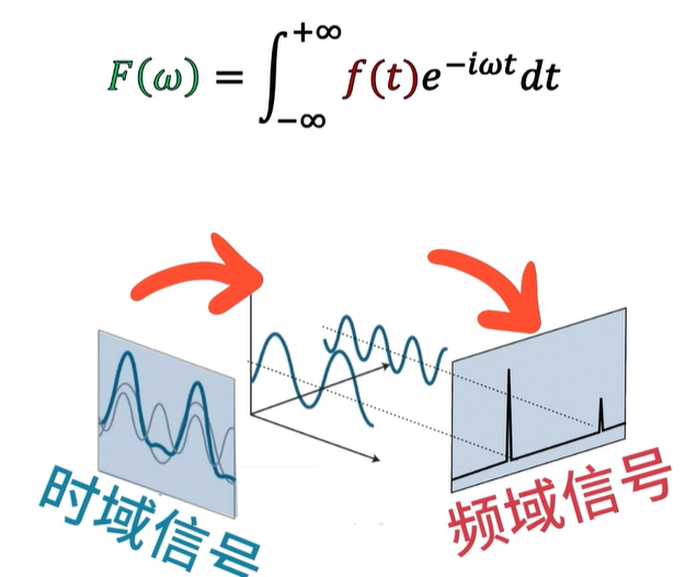 假如有一个时域函数 f(t),经过傅里叶变换之后呢,就变成了频域函数 F(ω),这个大黑F就是傅里叶变换操作的意思啊。