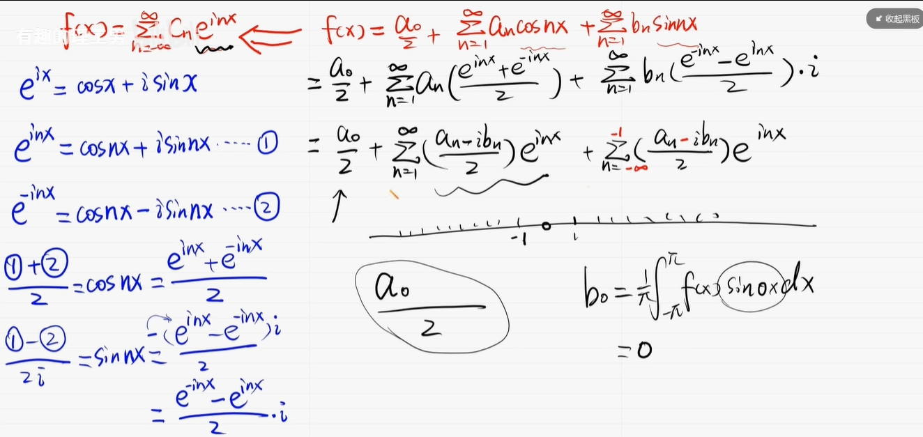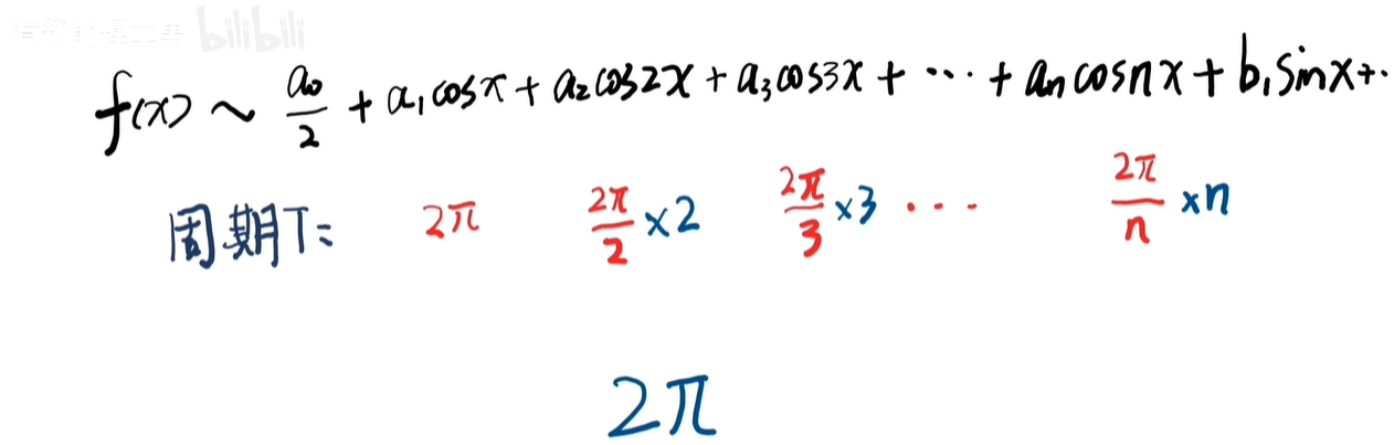 这是傅里叶级数的三角级数形式啊,这里的 A 0、 A 1、 A 2、 B 1、 B 2……这些都是常数。