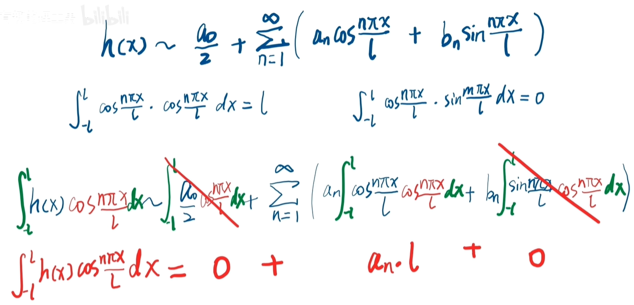 和前面利用正交性来计算的步骤,其实是一样的啊,这里除以 T ,主要是由积分的上下限的差决定的。